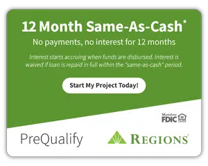 *Credit and loans provided by Regions Bank, Member FDIC, (650 S. Main St., Suite 1000, Salt Lake City, UT 84101) on approved credit, for a limited time. 19.99% fixed APR (provided however, APR will not exceed 15.99% for residents of New Jersey and 17.99% for residents of Florida and Wisconsin), effective as of April 2025, subject to change. Minimum loan amounts apply. Interest starts accruing when funds are disbursed. Interest waived if repaid in 365 days. Repayment terms vary from 24 to 132 months. Actual loan term may be shorter if less than the full approved amount of credit is used. First monthly loan payment due 365 days after funds are disbursed. If no payments made during same-as-cash period and APR of 19.99%, monthly payments vary from $21.99 to $30.82 per $1,000 borrowed depending on term. The minimum monthly payment will be no less than $50.00.